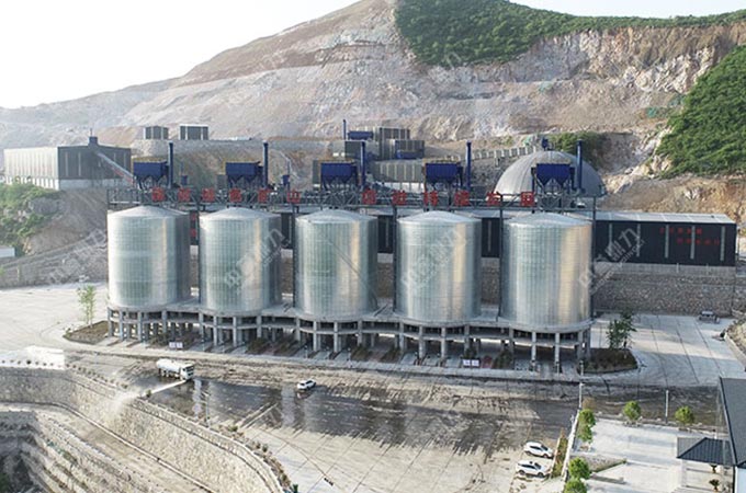該圖就是料倉,料倉下面就是散裝機了,物料通過散裝機放料裝車,司機只需要把車開到散裝機下面,程不需要下車。