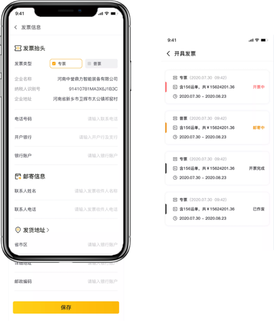 開票管理為企業(yè)貨主所用,包括發(fā)票信息、開具發(fā)票、開票歷史。