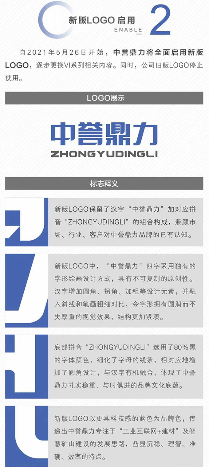 為配合公司整體戰(zhàn)略和發(fā)展規(guī)劃,不管強化公司的形象和影響力,進一步增進公司LOGO的識別性和傳播效果,中譽鼎力形象及LOGO進行新升級調整。